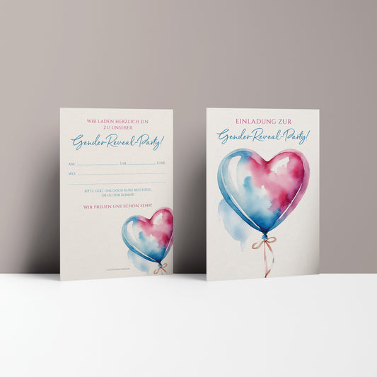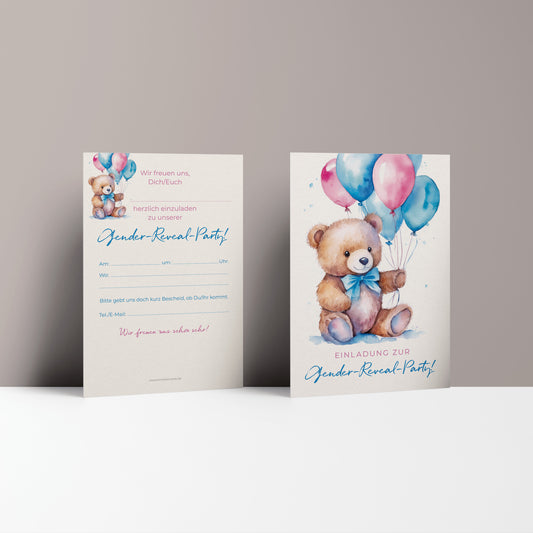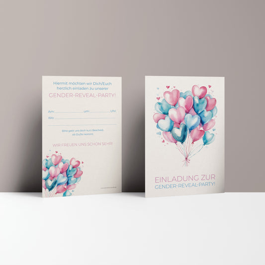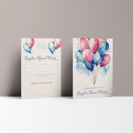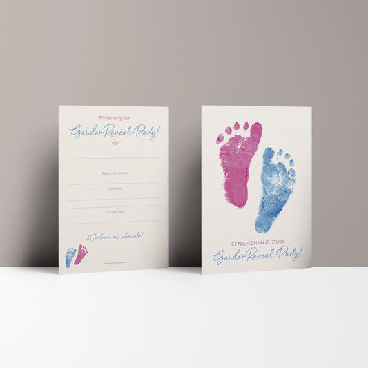 5x/10x Einladungskarten zur Gender Reveal Party | Baby Geschlecht Enthüllung | Premium-Karton | Große Karte (115mm x 170mm)