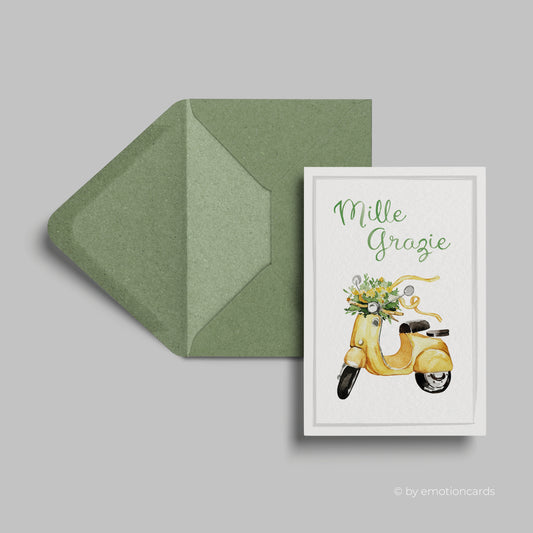 Dankeskarte | Mille Grazie | Gelbe italienische Vespa