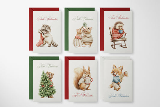 Weihnachtskarten Set | Niedliche Weihnachtstiere Aquarell 2