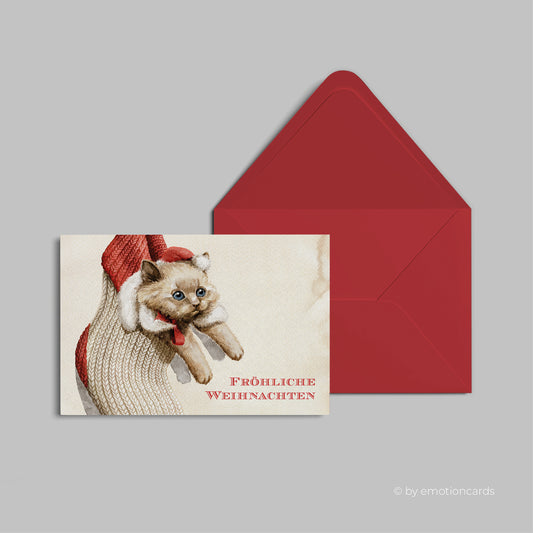 Weihnachtskarte | Katze in Weihnachtsstrumpf CloseUp