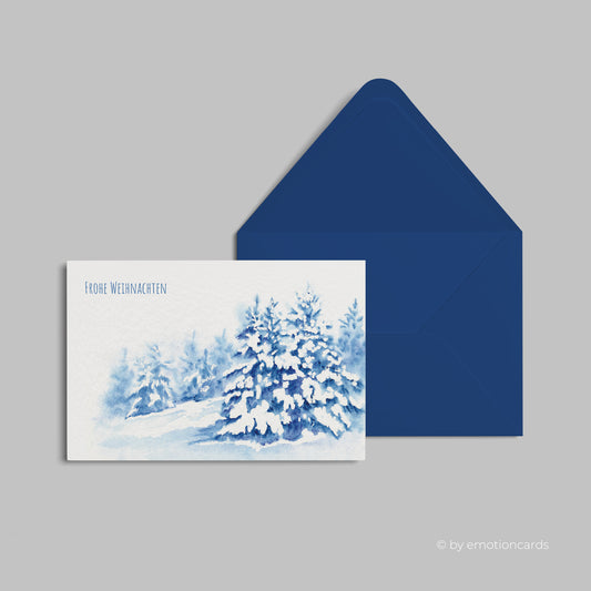 Weihnachtskarte | Verschneiter Winterwald in blau