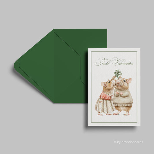 Weihnachtskarte | Küssende Mäuse unterm Mistelzweig