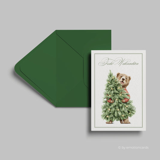 Weihnachtskarte | Fröhlicher Bär mit Weihnachtsbaum