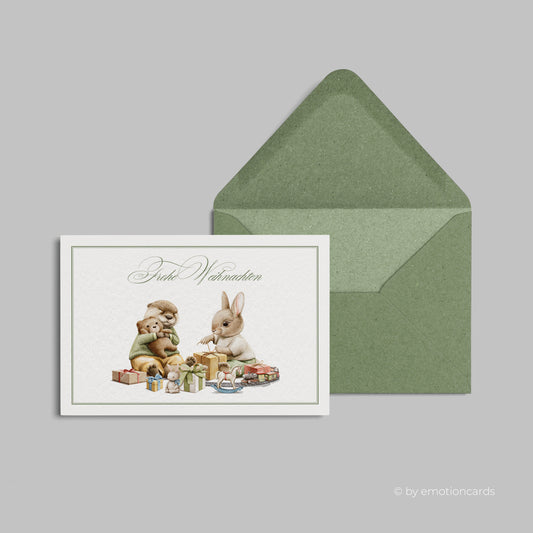 Weihnachtskarte | Biber & Hase feiern Bescherung