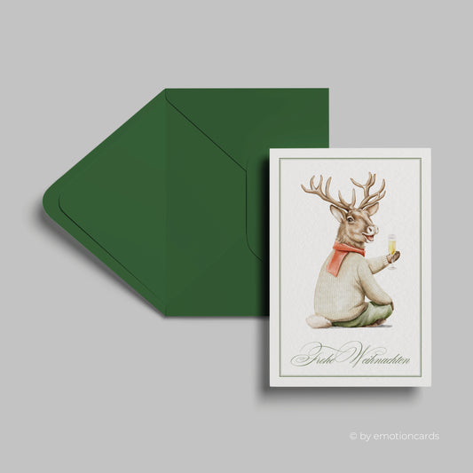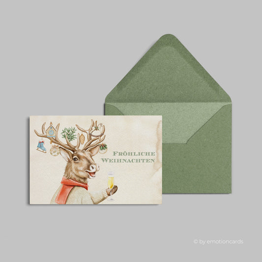 Weihnachtskarte | Lustiger Hirsch mit Champagnerglas