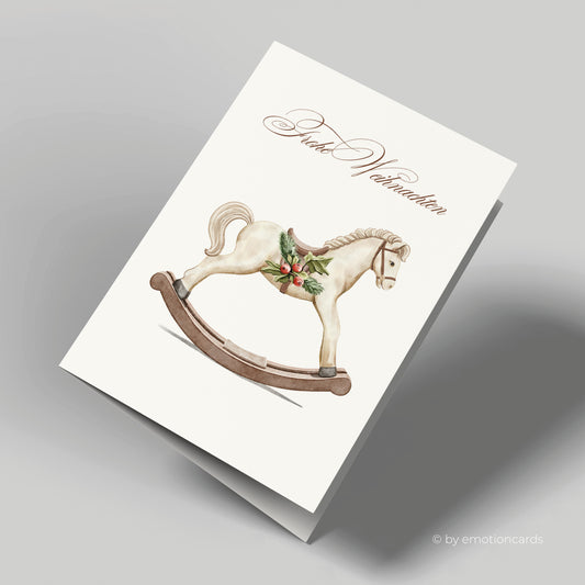 Weihnachtskarte | Antikes Holz-Schaukelpferd | Aquarell