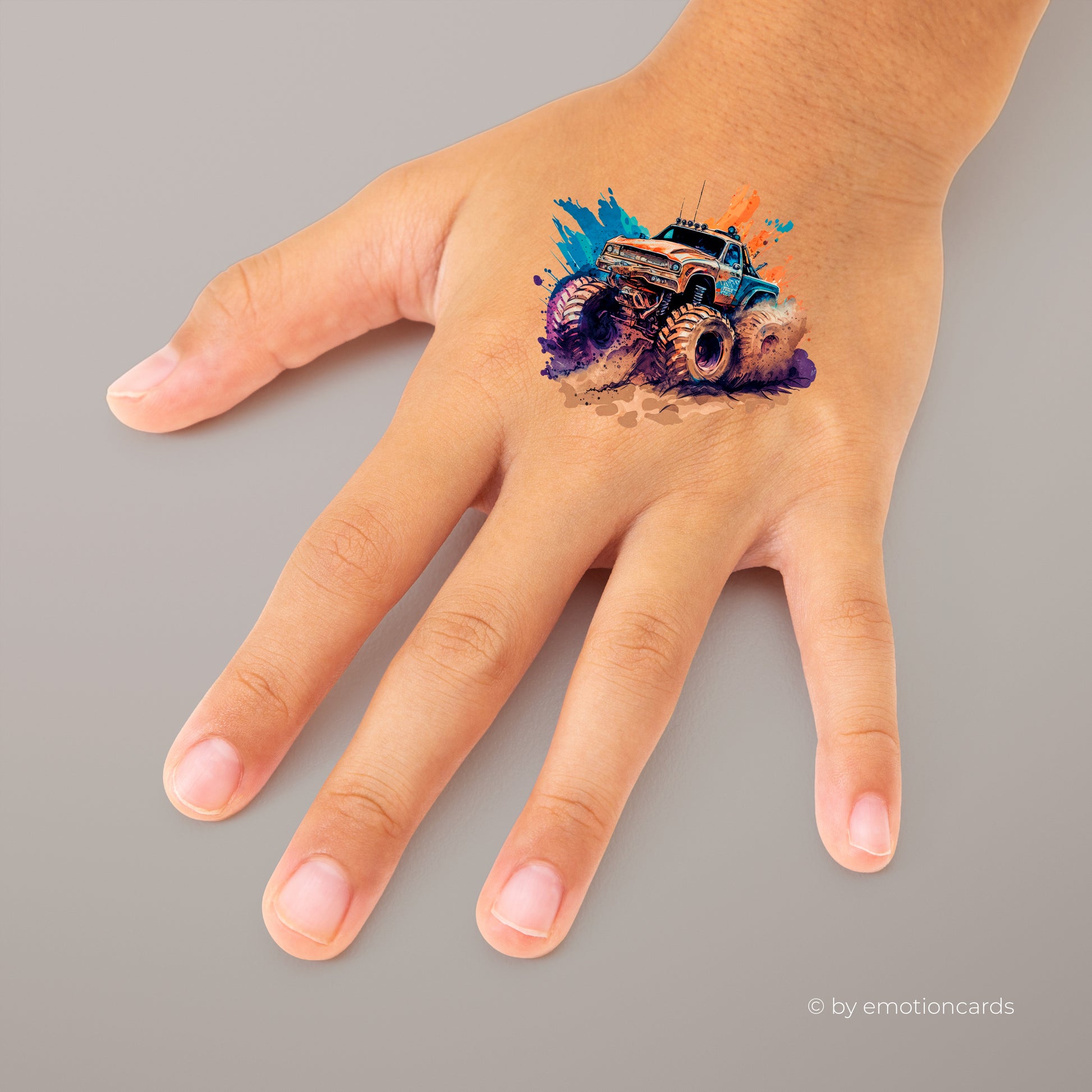 96 tolle hautfreundliche Tattoos für Kinder | Temporäre Tattoos | Monstertrucks | vegan gedruckt | dermatologisch getestet