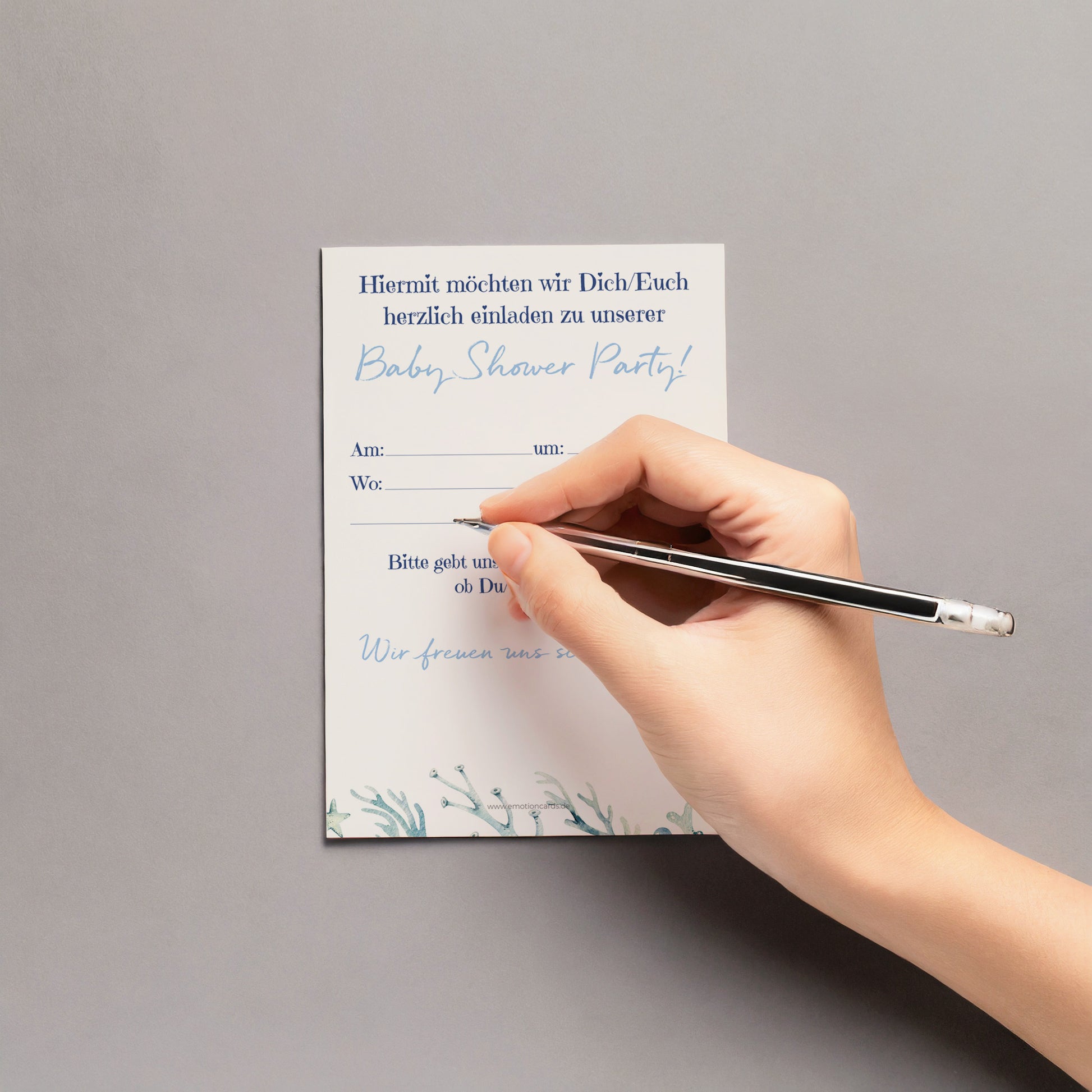 Schöne Einladungskarten zur Baby Shower Party! Aus FSC-zertifiziertem Papier und größer als übliche Postkarten (115mm x 170mm). Wählen Sie optional passende Umschläge aus und beeindrucken Sie Ihre Gäste mit diesen hochwertigen, umweltfreundlichen Karten. Jetzt bestellen und die perfekte Party planen!