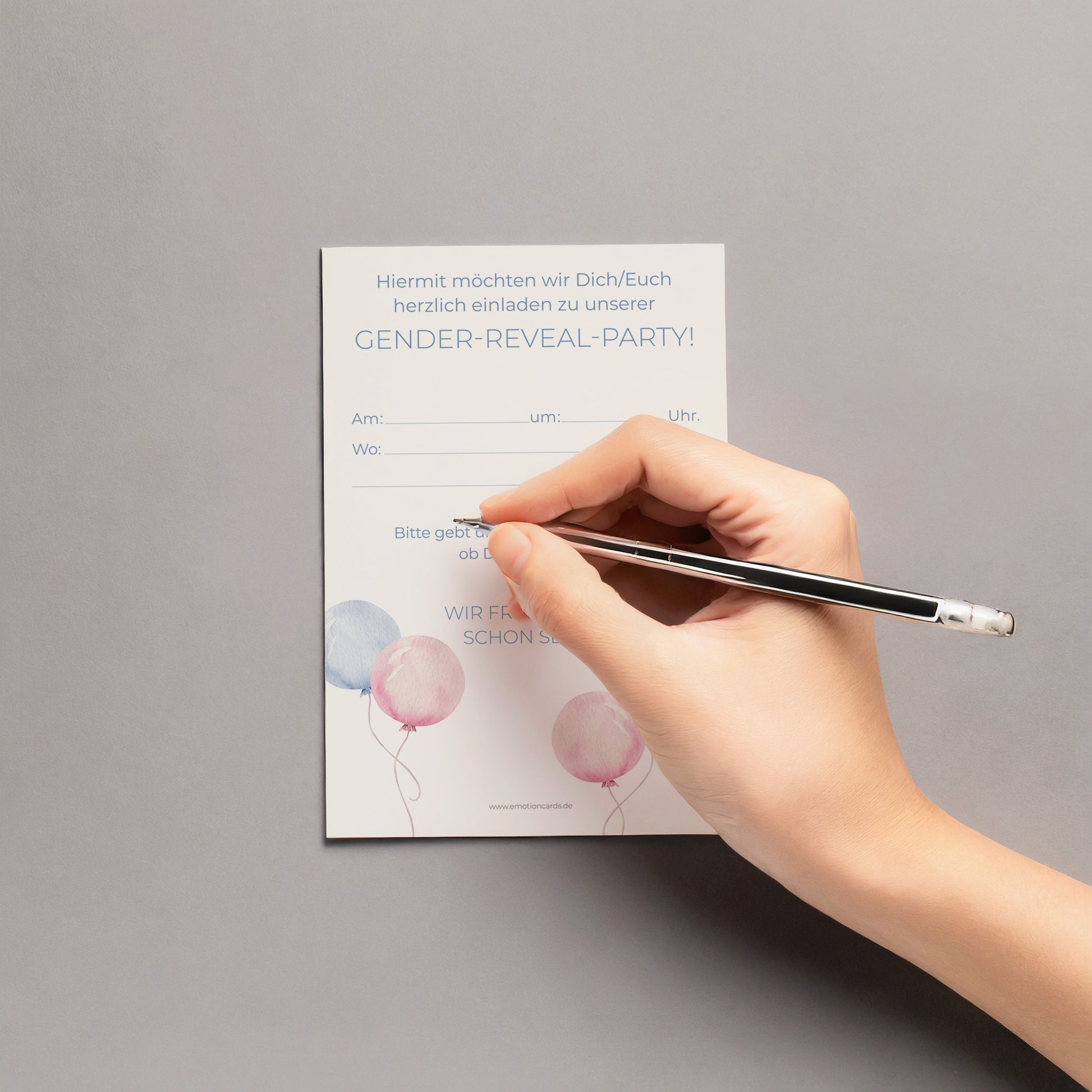 Schöne Einladungskarten zur Gender Reveal Party! Aus FSC-zertifiziertem Papier und größer als übliche Postkarten (115mm x 170mm). Wähle optional passende Umschläge aus und teile dein aufregendes Geheimnis auf eine besondere und einzigartige Weise mit deinen Freunden. Beeindrucke deine Gäste mit diesen hochwertigen, umweltfreundlichen Karten. Jetzt bestellen und die perfekte Party planen!