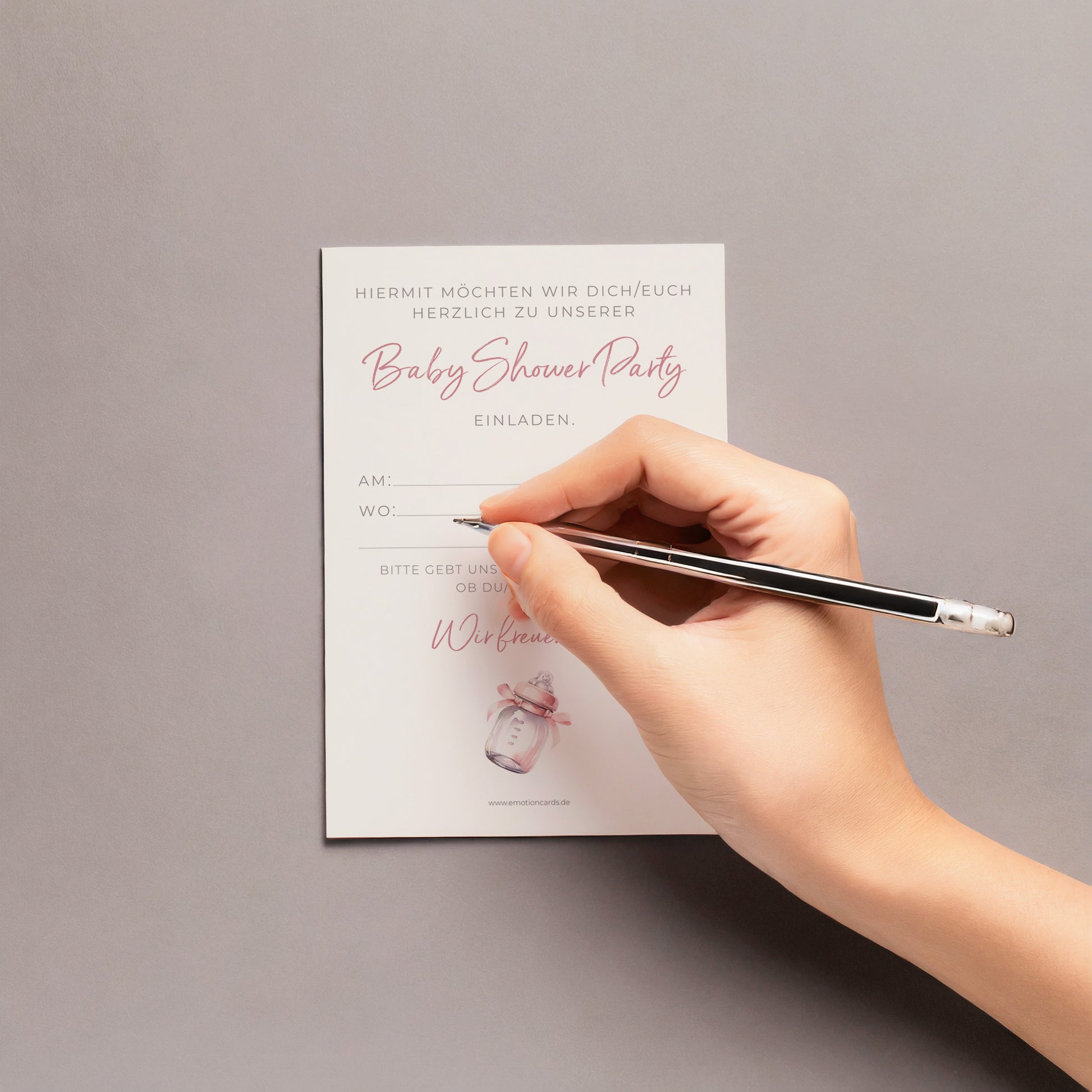 Schöne Einladungskarten zur Baby Shower Party für Mädchen! Aus FSC-zertifiziertem Papier und größer als übliche Postkarten (115mm x 170mm). Wählen Sie optional passende Umschläge aus und beeindrucken Sie Ihre Gäste mit diesen hochwertigen, umweltfreundlichen Karten. Jetzt bestellen und die perfekte Party planen!