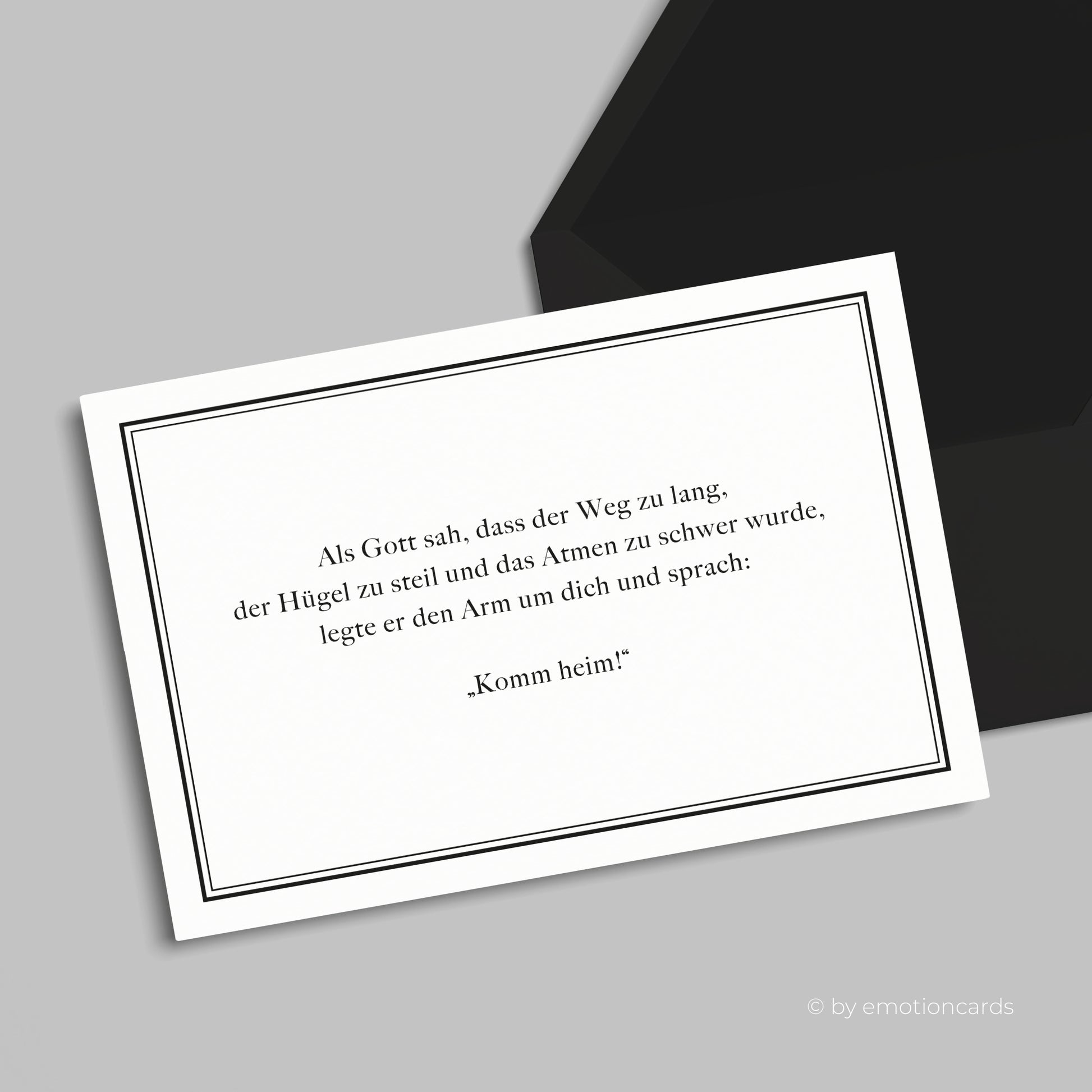 • Optional zur Auswahl: Edles Trauerkuvert mit Seidenfutter (120 mm x 175 mm)