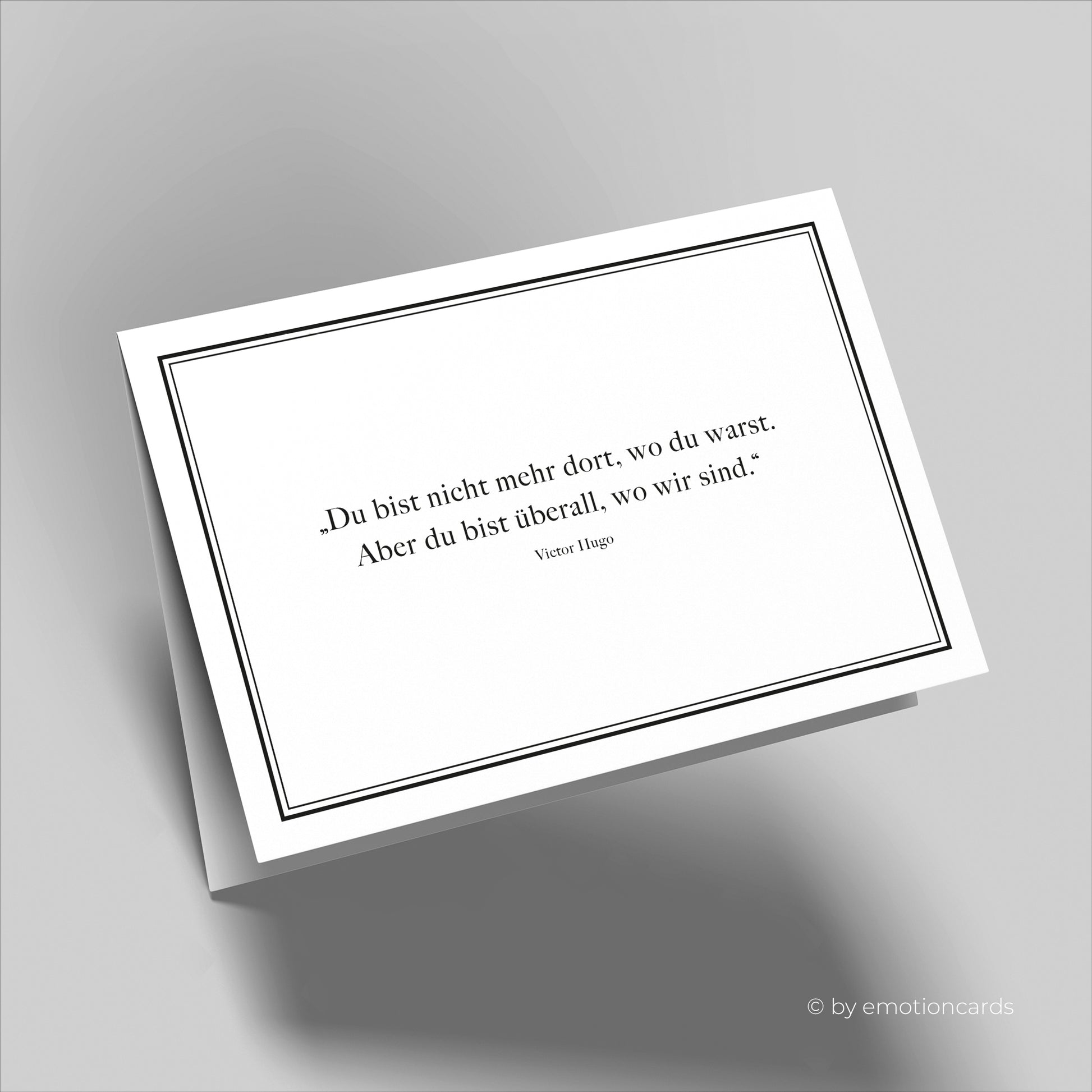Diese elegante Trauerkarte mit einem schönen emotionalen Zitat von Victor Hugo ist eine einfühlsame Art, dein Beileid auszudrücken. Mit stilvollen Rahmen und auf hochwertigem Premium-Karton gedruckt, ist sie eine besondere und persönliche Geste. Inklusive Umschlag und in einer Größe von 170mm x 115mm erhältlich.